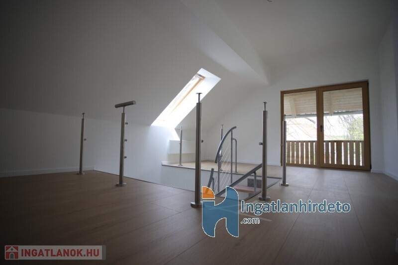 Az emeleten/tetőtérben szintén egy tágas előtér fogad minket elsőre,továbbá találunk még egy fürdőszobát és 2 szobát. Valamint egy keleti fekvésű,fából készült,fedett 4 négyzetméteres teraszt.