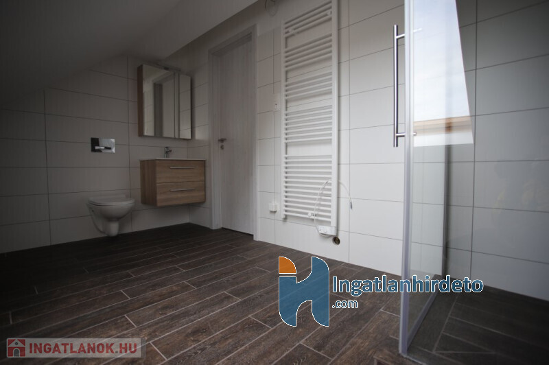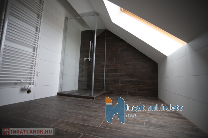 Az emeleten/tetőtérben szintén egy tágas előtér fogad minket elsőre,továbbá találunk még egy fürdőszobát és 2 szobát. Valamint egy keleti fekvésű,fából készült,fedett 4 négyzetméteres teraszt.