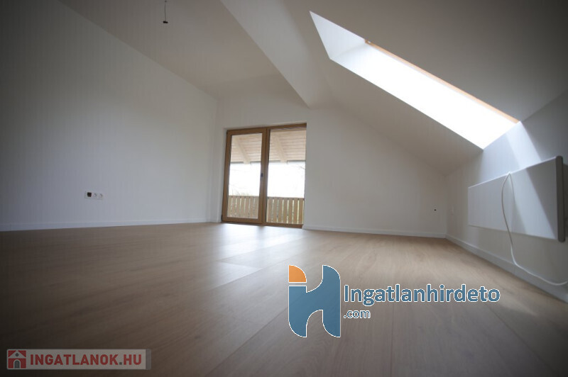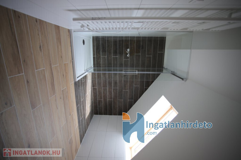 Az emeleten/tetőtérben szintén egy tágas előtér fogad minket elsőre,továbbá találunk még egy fürdőszobát,2 szobát. Valamint egy nyugati fekvésű,fából készült,fedett 3 négyzetméteres teraszt.