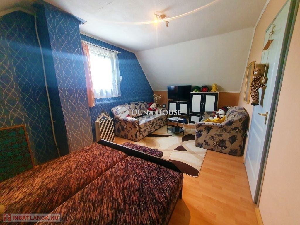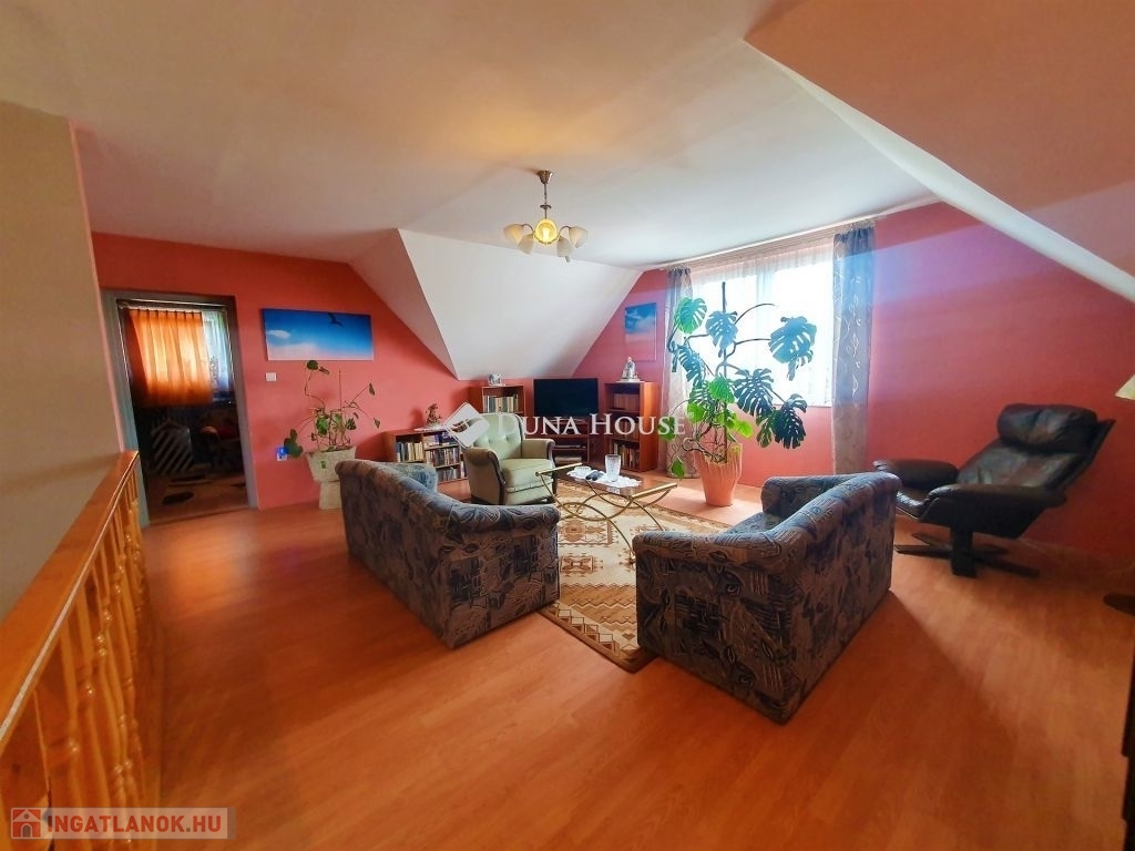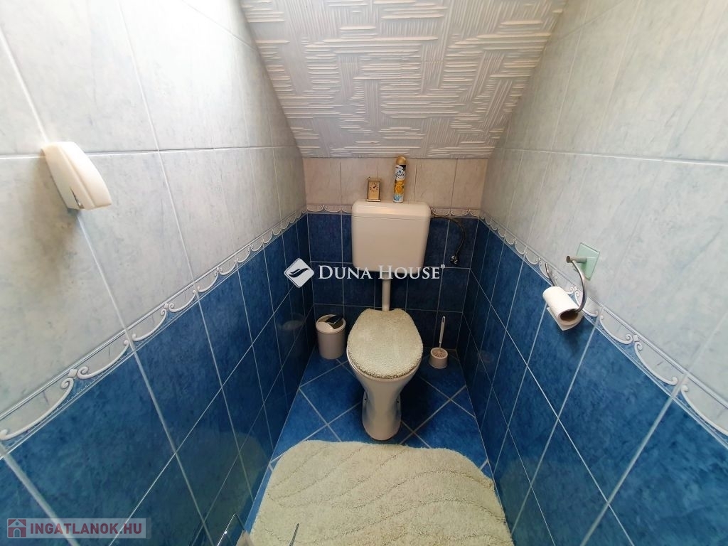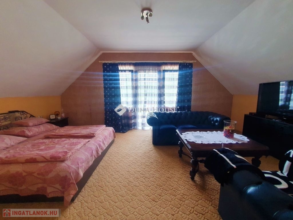 A ház duplakomfortos, két fürdőszobával rendelkezik, mindkét szinten padlófűtés van kiépítve, amely egy vegyes tüzelésű kazánról üzemel. Az alsó szinten egy amerikai konyhás nappalit találunk, wc-t, fürdőt, kamrát, innen nyílik a kazánház, amin kersztül kijuthatunk a garázsba. A felső szinten 3 háló, tágas nappali , fürdő, wc és egy gardrób szolgálja a lakók kényelmét. A vezetékes víz mellett lehetőség van egy ásott kútról kiépített házi vízmű használatára is az ingatlanban, így csökkentve annak rezsi költségét. A ház földszintjén található egy 60 m2 nagyságú üzlethelyiség, amely jelenleg presszóként üzemel, de könnyedén átalakítható akár egy önálló lakrésszé. Az utca és a környék tiszta, rendezett, a közelben, kb. 10 perc sétára található horgásztó és környezete kellemes kikapcsolódási lehetőséget nyújt az ott lakóknak. Buszmegálló gyalog kb 5 perc, kisbolt 10 percre található.