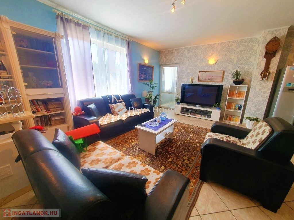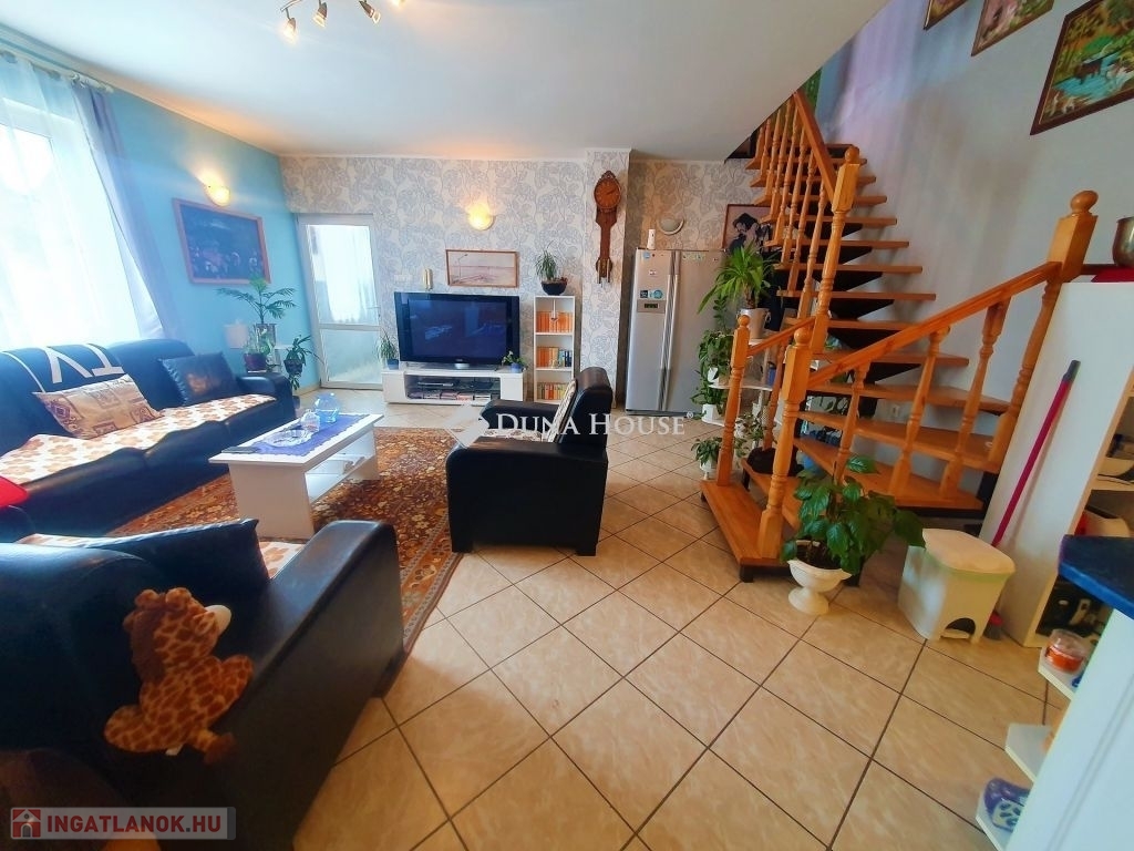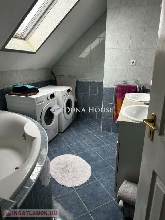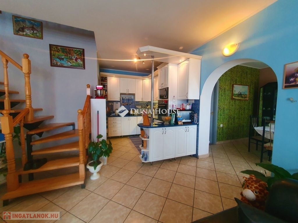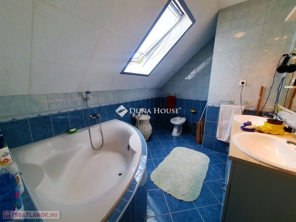 A ház duplakomfortos, két fürdőszobával rendelkezik, mindkét szinten padlófűtés van kiépítve, amely egy vegyes tüzelésű kazánról üzemel. Az alsó szinten egy amerikai konyhás nappalit találunk, wc-t, fürdőt, kamrát, innen nyílik a kazánház, amin kersztül kijuthatunk a garázsba. A felső szinten 3 háló, tágas nappali , fürdő, wc és egy gardrób szolgálja a lakók kényelmét. A vezetékes víz mellett lehetőség van egy ásott kútról kiépített házi vízmű használatára is az ingatlanban, így csökkentve annak rezsi költségét. A ház földszintjén található egy 60 m2 nagyságú üzlethelyiség, amely jelenleg presszóként üzemel, de könnyedén átalakítható akár egy önálló lakrésszé. Az utca és a környék tiszta, rendezett, a közelben, kb. 10 perc sétára található horgásztó és környezete kellemes kikapcsolódási lehetőséget nyújt az ott lakóknak. Buszmegálló gyalog kb 5 perc, kisbolt 10 percre található.