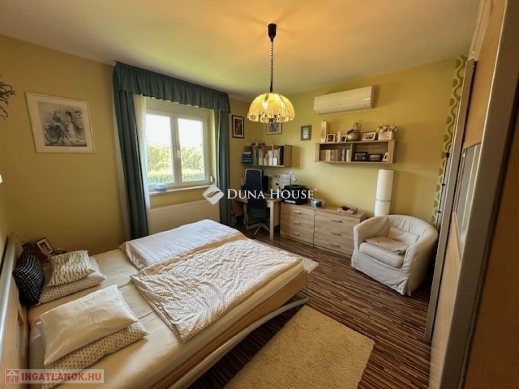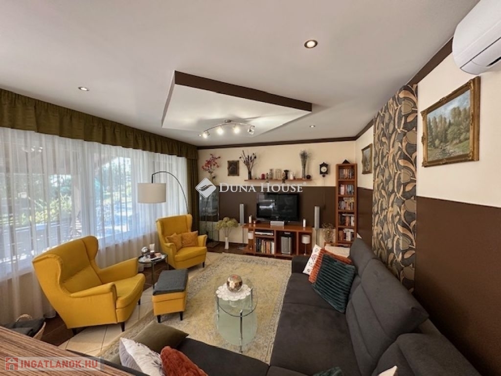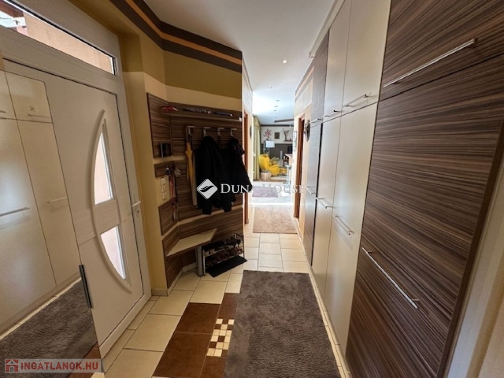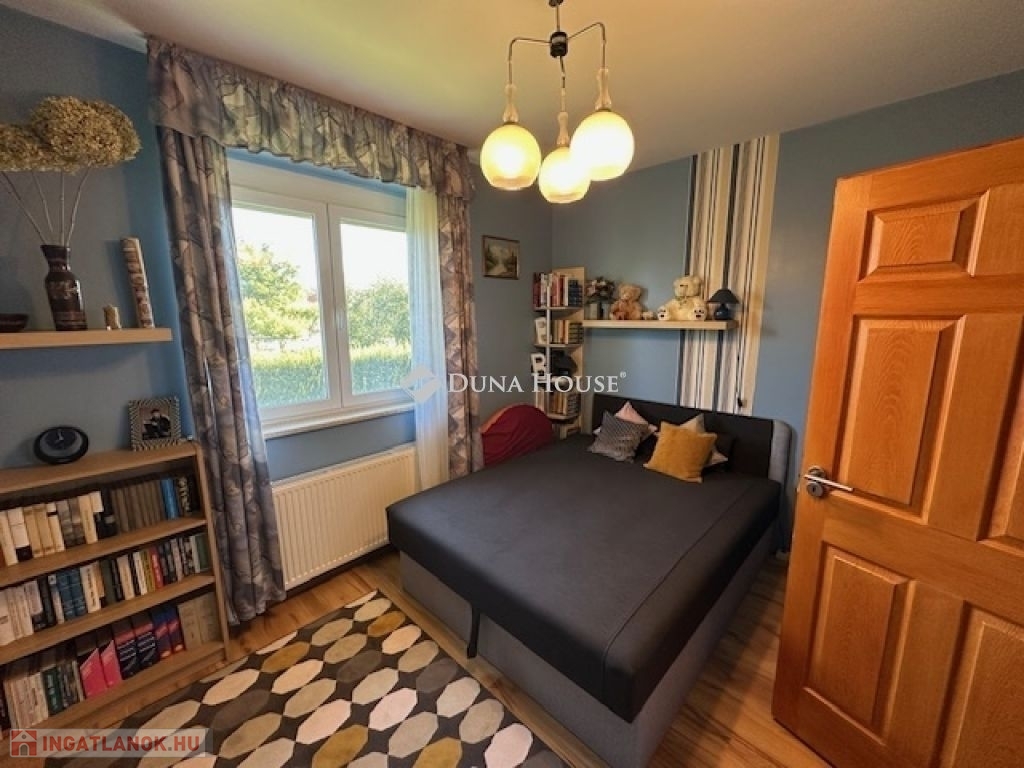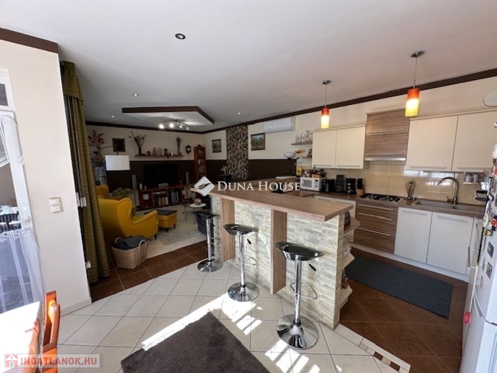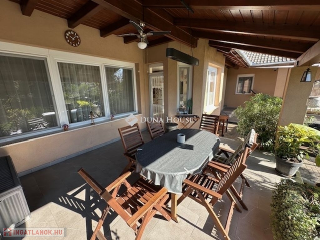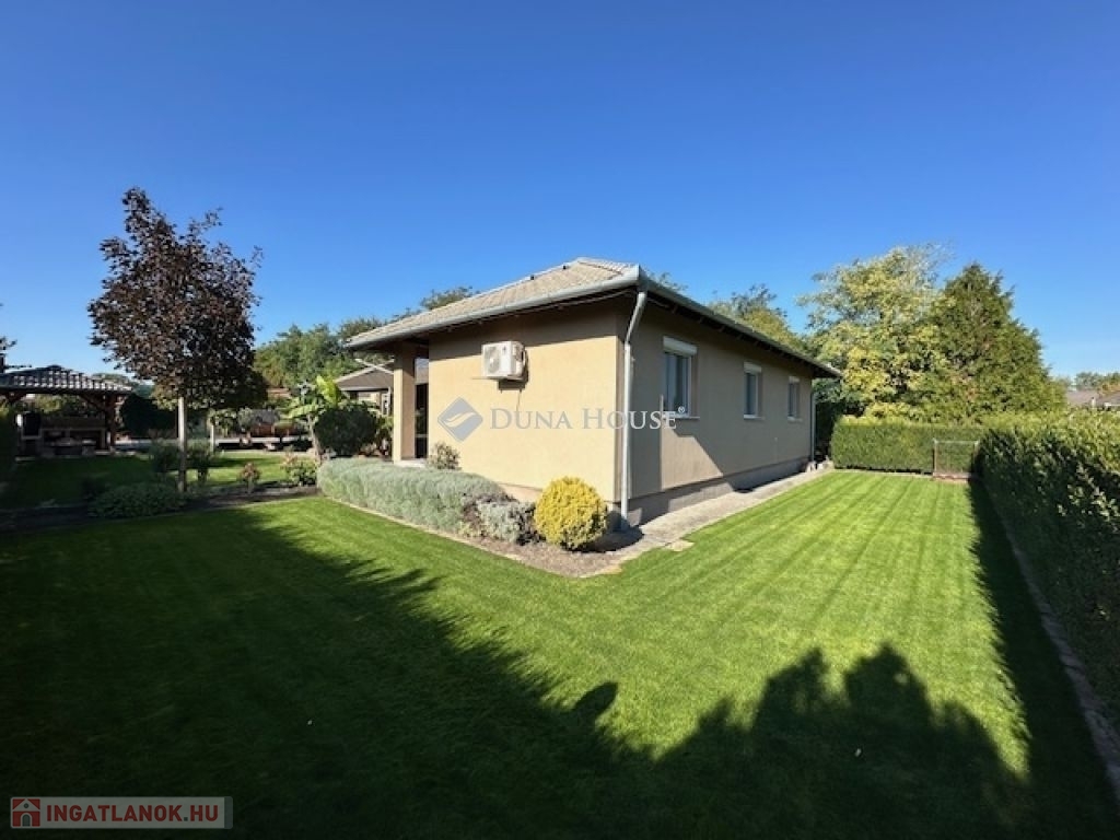 Eladó Nagyvenyimen egy 146 m2-es, 2009-ben épült, téglaépítésű családi ház. 3 szobával és egy tágas, amerikai konyhás nappalival rendelkezik. Ez az otthon, világos és barátságos hangulatú. Az épület szerkezetileg masszív, gondosan karbantartott, modern igényeknek megfelelően kialakított. Az ingatlan kiemelkedik tervezésének és elosztásának köszönhetően is, ahol minden helyiség ideális méretű és könnyen bútorozható, hogy otthonosan érezze magát a szobákban és a tágas nappaliban egyaránt. A házban padlófűtés, klíma és vegyes tüzelésű kazán biztosítja a meleget, valamint 7 kW-os napelemrendszer gondoskodik a gazdaságos üzemeltetésről. Az épület 10 cm vastag hőszigeteléssel ellátott - a födém is - így energia hatékonysága kiemelkedő. A garázsban szauna kapott helyet, valamint a kamerás automata kapu kényelmes bejutást biztosít. A füvesített, automata öntözőrendszerrel ellátott, gondosan karbantartott, gyönyörű kert igazi pihenőoázis, ahol jakuzzi és bográcsozó, valamint dísz és egzotikus növényekkel beültetett környezet teszi teljessé a harmóniát. Ez tökéletes helyszín családi és baráti kikapcsolódáshoz. Kiváló választás azoknak akik távol a város zajától mégis remek infrastruktúrájú településen keresnek egy modern és igényes otthont.