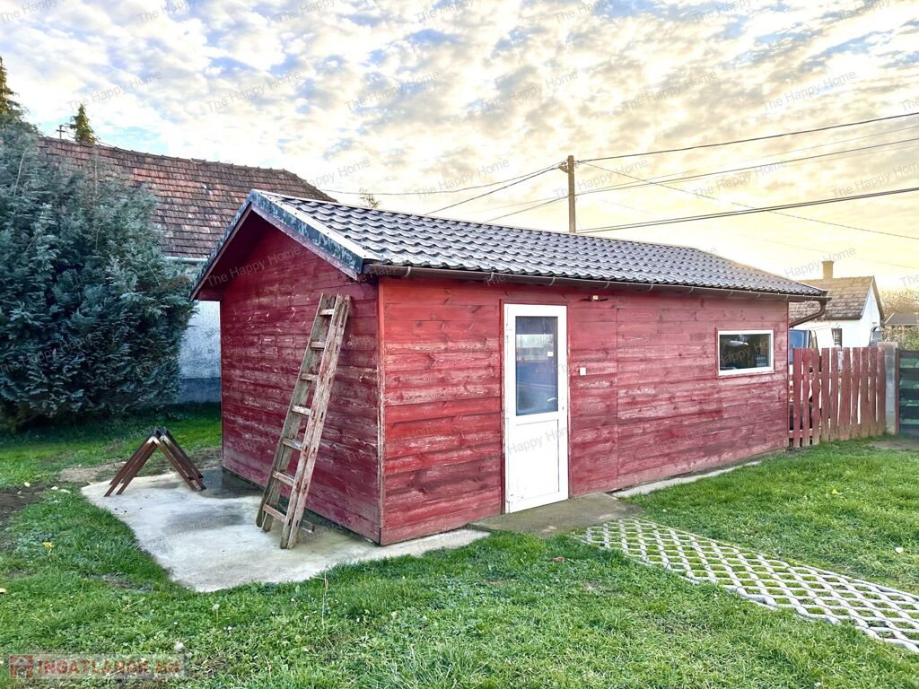 A lakóház mellett található egy tágas, 25 nm-es, elektromos kapuval felszerelt, szigetelt garázs, ahova szintén be van vezetve az áram.