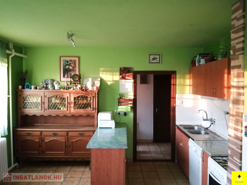Az utcafronti házhoz kapcsolódik a másik 60 m2-es épület. A házban egy 28 m2-es szoba, egy konyha, egy étkező, egy fürdőszoba, egy wc található. Ez a ház tovább bővíthető a tetőtér beépítésével.