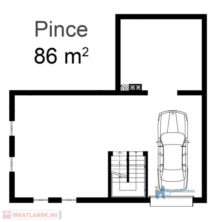 A pincében található minden gépészet (napelem és hőszivattyú beltéri egységei, központi szellőztető rendszer hőcserélője, tartalék vegyes tüzelésű kazán, puffertartály, használati melegvíz tárolók, stb...), garázs és egy nagy egybenyitott tér. A pince nettó alapterülete 86m2, amely 50%-ban számít bele a ház teljes területébe.
