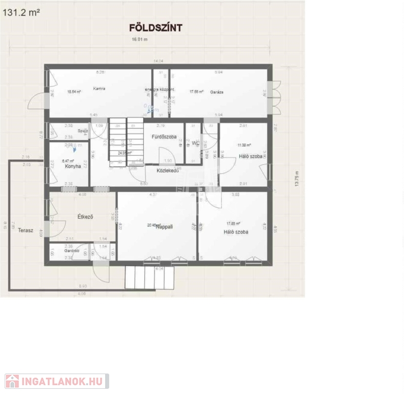 - Az előszobából a tágas nappaliba és egy barátságos étkezőbe érünk, ahonnan egy 20 nm-es teraszra léphetünk ki.