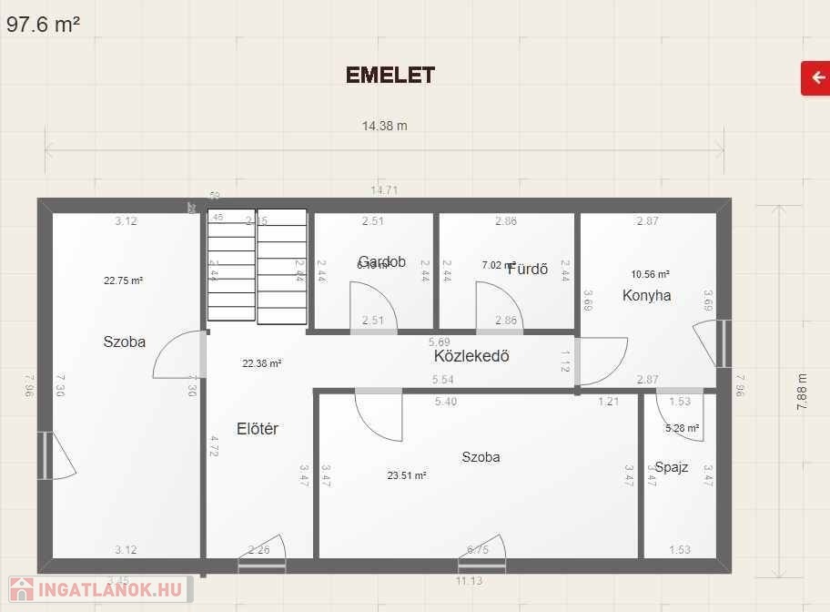A ház 3 szintes egy belső lépcsőház köti össze a 3 szintet. Ezen keresztül juthatunk fel a tetőtérbe és le a szuterén szintre is. A tetőtérben könnyedén meg lehet oldani egy külön külső bejárat kialakítását, így a ház teljes mértékben KÉTGENERÁCIÓS otthonként is funkcionálhat.