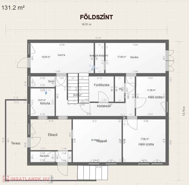 Fsz-en nappali-konyha-étkező, kamra, két hálószoba, fürdő és WC került kialakításra.
