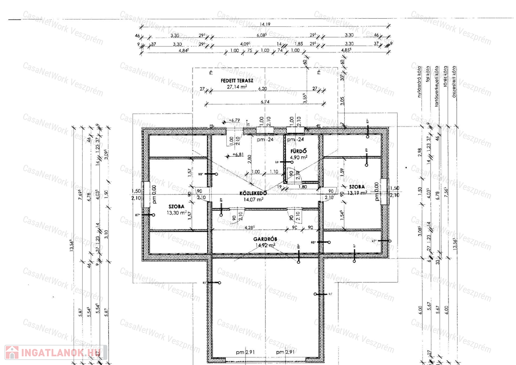 hálószoba, fürdőszoba, valamint közlekedő, tároló, gardrób, kamra + fedett