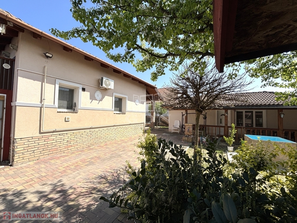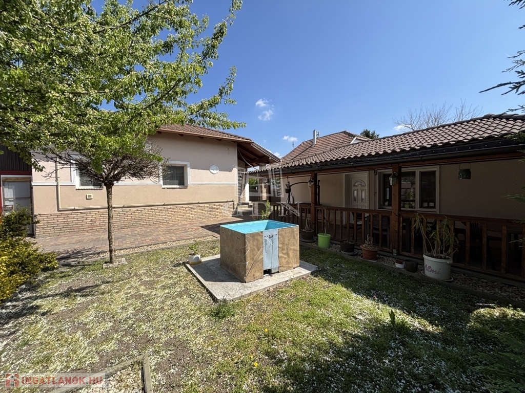 ELADÓ Nyáregyházán, 535 m2-es telken, KÉT KÜLÖNÁLLÓ ÉPÜLETBŐL álló, összesen közel 100 m2-es ingatlan – SOKOLDALÚ HASZNOSÍTÁSI LEHETŐSÉGEKKEL. A két ház vegyes falazatú, a nagyobb 64 m2-es, 2+1 szobás, a kisebb 30 m2-es, 1 szobás ÖSSZKOMFORTOS.