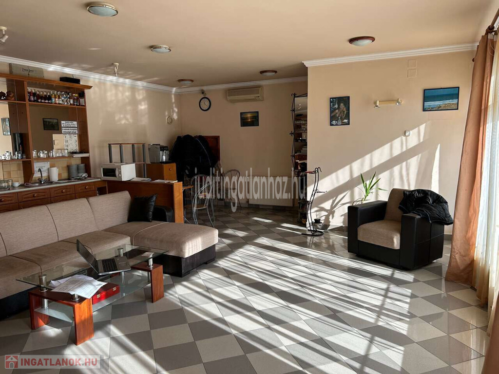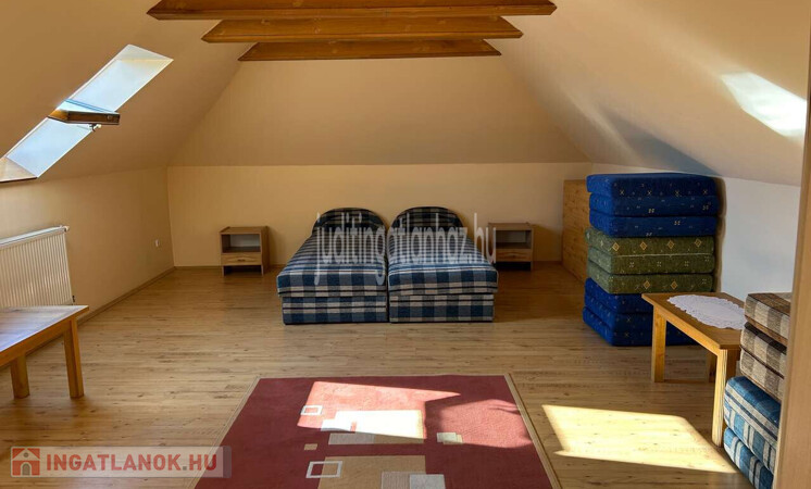 Nyíregyháza, Sóstóhegyen eladó 170 m2-s, öt szobás, kettő nappalis, négy fürdőszobás, két külön wc, kamra, műanyag nyílászárós, egyedi gáz és vegyes fűtésű, riasztóval felszerelt, 5 hűtő klímás, 30-s porotherm téglából épült, külsőleg 5 cm szigetelés borított, beton födémes rajta 40 cm salakgyapot szigetelés, dupla fedésű bramac betoncseréppel fedett jó állapotú szintes családi ház a hozzá tartozó 30 m2-s fedett, burkolt terasszal. Az ingatlan alatt teljes pince található mely burkolt és több fajta vállalkozásra alkalmas az 1250 m2-s zárt telken kiépített öntözőrendszer, fúrott kút, térkövezett nagy parkoló és két állásos garázs található.