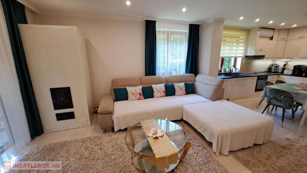 A ház téglaépítésű, hőszigetelt, fa hőszigetelt nyílászárókkal ellátott, a földszinten elektromos redőnyökkel. A közösségi terekben padlófűtés, a szobákban radiátoros hőleadás működik, a nappaliban pedig egy hangulatos cserépkályha gondoskodik az otthon melegéről. A 12,6 kW-os napelemrendszernek, a két hűtő-fűtő klímának, a vízlágyító rendszernek és a korszerű műszaki megoldásoknak köszönhetően a fenntartási költségek rendkívül kedvezőek. A kényelmet tovább növeli a központi porszívó, a riasztórendszer, a kaputelefon és az elektromos kapu.