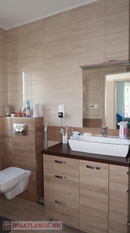 Nyíregyháza-Oros csendes környékén, 2019-ben épült, 143 m2-es 3 szoba, nappalis, nagy teraszos önálló családi ház , plusz 144 m2-es gazdasági épület., valamint 32 m2-es garázzsal, kiváló állapotban, 8500 nm-es telekkel eladó. Az ingatlanba prémium minőségű anyagok kerültek beépítésre. A rendkívül jó elosztású ház tágas, világos, déli fekvésű nappalival, egyedi, kiváló minőségű beépített konyhával, spájzzal, két fürdőszobával. mosókonyhával és gardrób szobával rendelkezik. Az otthon melegét egy gyönyörű cserépkályhán kívül infra padlófűtés adja. Az ingatlan teljes elektromos fogyasztását 11, 6 KW-os napelem biztosítja, mely igény esetén 20 %-al bővíthető, ezért csupán a víz és csatornadíj jelenik meg havi rezsi költségben. A főépület 20 cm-es szigeteléssel ellátott, műanyag nyílászárók kerültek beépítésre, az energetikai besorolása CC. Gazdasági épület bruttó 144 m2 alapterületű, mely áll egy 88 m2 egylégterű helyiségből, valamint konyha, mosdó és WC helyiségekből áll. Fűtése infra panel és klíma. A gazdasági épület bármilyen célra hasznosítható, ugyanolyan anyagokból épült, mint a családi ház, így akár lakás célra (kétgenerációs lakhatás) is átalakítható. A fűtése infra panel, a szigetelés 15 cm. Az udvar parkosított, öntözőrendszerrel ellátott, a bejárat automata kapuval van felszerelve. Amennyiben szeretne csendes helyen, jó levegőn lakni és felkeltettem az érdeklődését, bátran hívjon!Az ingatlan azonosítója: 90945Érdeklődni: +36703610015 Az ingatlan azonosítója: 90945 Érdeklődni: +36703610015