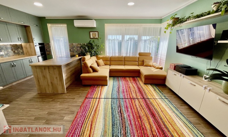 A ház szigetelt, tégla falazatú, újszerű állapotú, 2024-ben épült, 144 nm, hőszivattyús fűtéssel, minden helyiségben klíma vezeték előkészítéssel, melyből 2 db beépítésre került, részben elektromos redőnnyel szerelt, műanyag nyílászárós, laminált padló, járólap burkolatú.