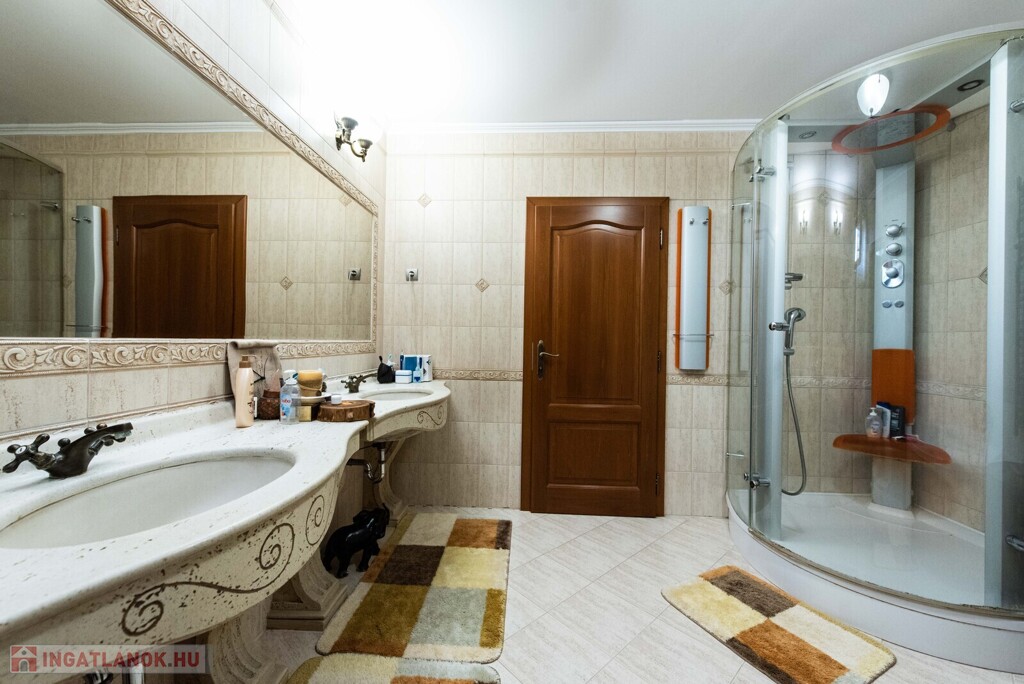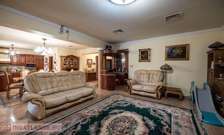 Nyíregyházán, Oros elején, minden igényt kielégítő, 620 nm összterületű, 2009-ben Ytongból épült, 4 szoba + tágas konyha étkező nappalival. Az ingatlan 2 szintes, alsó szintjén nappali, konyha, étkező, 1 hálószoba, 2 fürdő wc-vel, terasszal, felső szintjén 3 hálószoba, fürdőszoba, mellékhelyiséggel valamint egy gardrobe szoba található. járólap és laminált padló burkolatú, 2 db kondenzációs gázkazánnal és minden fő helységben klímával. Az ingatlanhoz tartozik egy 45 nm-es iroda helyiség, 40 nm-es konditerem, valamint egy 300nm-es zárt 6 x 20 m-es medence amelyet nyáron a napkollektor télen pedig gáz hőcserélős medencefűtés rendszer fűti. A továbbiakban 2 állásos garázzsal és 2 állásos autóbeállóval, prémium minőségű nyílászárók, 11.2 KW -os napelem rendszer, 3500 nm-es gyönyörűen parkosított telken, beépített öntözőrendszerrel, filagóriával családi ház eladó.Az ingatlan azonosítója: 97247Érdeklődni: +36702560693 Az ingatlan azonosítója: 97247 Érdeklődni: +36702560693