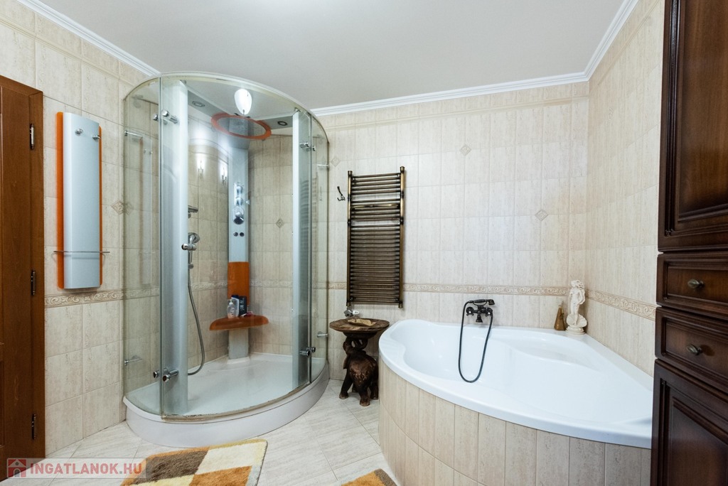 Nyíregyházán, Oroson megvételre kínálunk egy 620 nm-es, 2009-ben Y-Tong tégából épült N + 4 szobás, Amerikai stílusú konyha, étkezővel rendelkező családi házat. Az ingatlan 2 szintes, alsó szintjén nappali, konyha, étkező, 1 hálószoba, került elhelyezésre, felső szintjén 3 hálószoba, fürdőszoba, mellékhelyiséggel valamint egy gardrobe szoba található. Az ingatlanhoz tartozik egy 45 nm-es iroda helyiség, 40 nm-es konditerem, valamint egy zárt medence amelyet napkollektor üzemel. A továbbiakban 2 állásos garázs, prémium minőségű nyílászárók, 11.2 KW -os napelem rendszer, 2 kondenzációs kazán emeli ennek az ingatlannak az értékét. Az ingatlanhoz tartozó össz telek terület 3500 nm-es, melynek kb 1000 nm-e gyönyörűen parkosított.