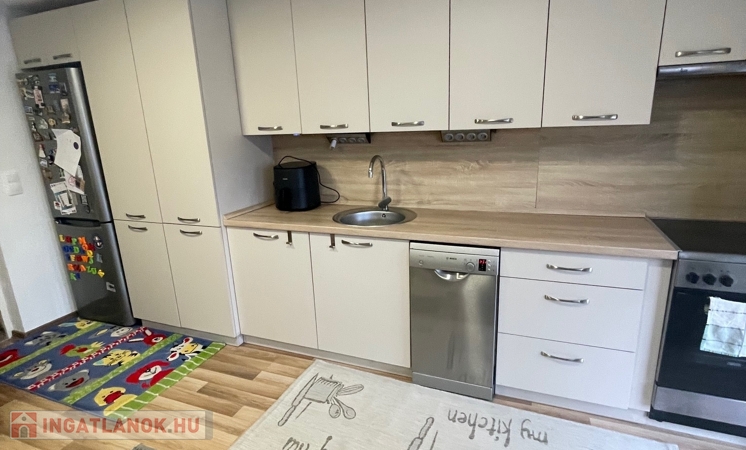 A teljesen gépesített konyhabútor a vételár részét képezi. Az otthon melegéről egyedi gázfűtés gondoskodik, radiátoros hőleadással.