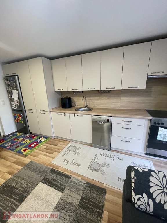 Az ingatlan szoba nappalis, elrendezése praktikus és kényelmes. A szobák laminált padlóval, míg a közlekedők és a vizes helyiségek járólappal burkoltak. A fürdőszoba és a WC külön helyiségben kapott helyet, ami tovább növeli a komfortérzetet.