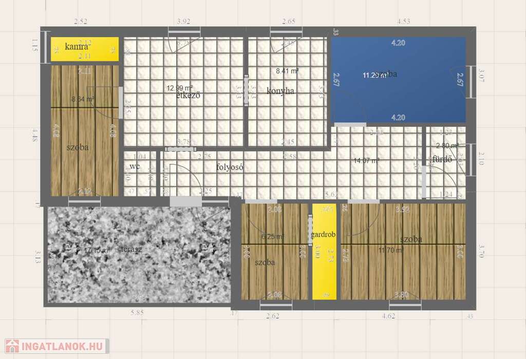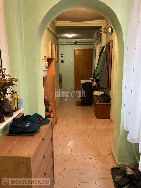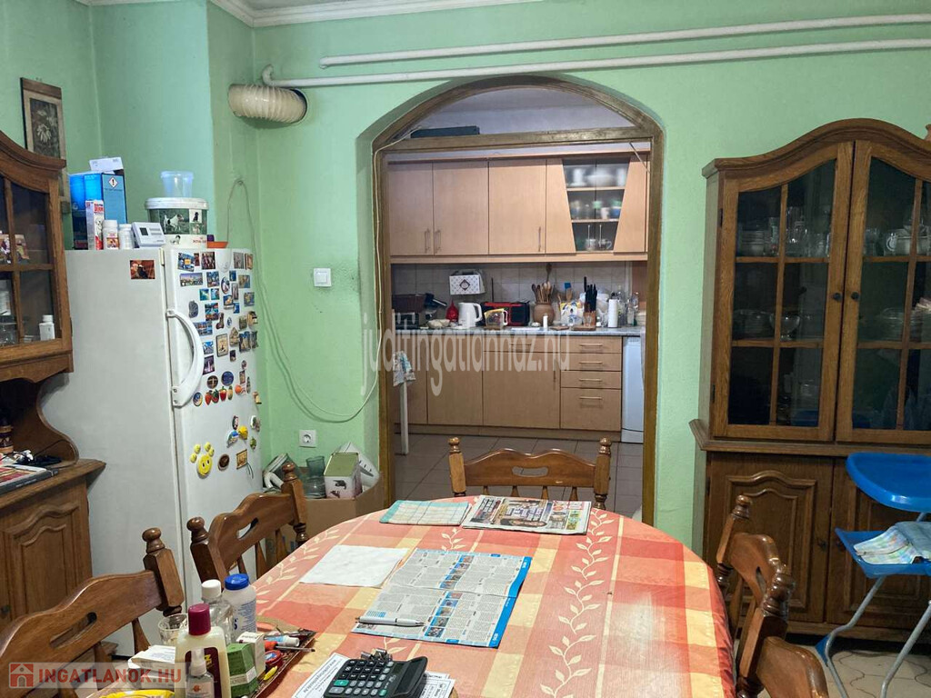Nyíregyházán a nagy körúton eladó 100 m2-s, négy különnyíló szobás, konyha+étkezős, fürdőszoba+wc, wc+kézmosó, kamra, egyedi gázfűtésű, műanyag nyílászárós mely redőnnyel felszereltek, tégla és vályog építésű a tégla részen 8 cm-s szigetelés, külsőleg nemes vakolattal burkolt, palával fedett de megerősített tetőszerkezet, állapotra felújítandó családi ház. Az ingatlan 860 m2-s telken fekszik tartozik hozzá 18 m2-s fedett burkolt terasz, ipari áram, ásott kút és három állásos garázs. NÉGY SZINTES TÁRSASHÁZ ÉPÍTÉSÉRE ALKALMAS TERÜLET!