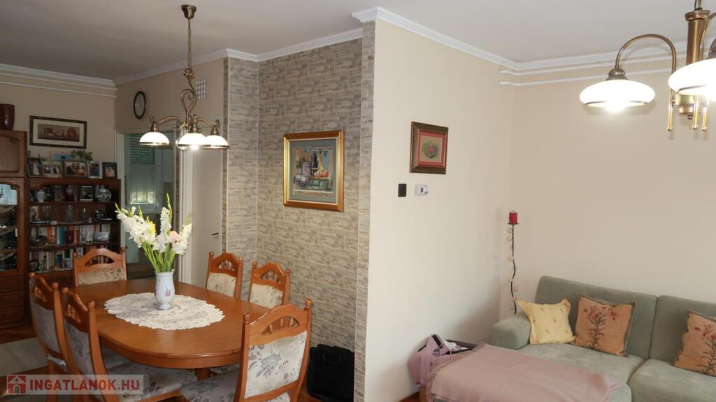 Nyíregyháza Ságvári Kertváros kedvelt környékén, 130 nm-es, 3 szoba, Nappalis, kívülről szigetelt, nagy erkélyes, műanyag nyílászárókkal, redőnnyel és rovarhálóval felszerelt, egyedi gázfűtéses, járólap és parketta burkolattal rendelkező, téglából épült sorház, biztonsági bejárati ajtóval, új konyhabútorral, felújított fürdőszobával, 21 nm-es garázzsal eladó. A tető és a földszinti nappali burkolata felújításra került. A földszinten előtér, nagy nappali, konyha, spájz, zuhanyzó wc-vel, emeleten előtér, két szoba, fürdőszoba, külön wc-vel, tetőtérben egy nagy szoba található. Az udvar tágas, részben térkövezett és parkosított, mely közös osztatlan tulajdont képez. A közelben buszmegálló, iskola, óvoda, játszótér, boltok is vannak. Az ingatlan fenntartási költségei nagyon kedvezőek. Várom komoly érdeklődők hívását!Az ingatlan azonosítója: 91001Érdeklődni: +36703610015 Az ingatlan azonosítója: 91001 Érdeklődni: +36703610015