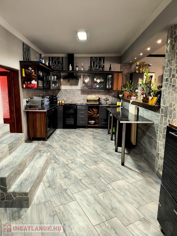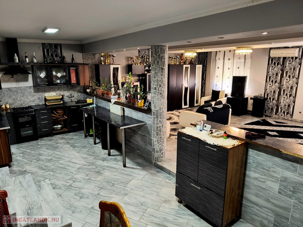 Az akár két generáció együttélésére is alkalmas ház redőnyözött, műanyag nyílászárókkal felszerelt, fűtését egyedi gáz és vegyes tüzelésű kazán biztosítja radiátoros fűtési rendszerrel, a nyári meleg napokat pedig több klíma teszi kellemessé. A beépített konyhabútorral felszerelt konyha kapcsolódik a nappalihoz és az étkezőhöz, de mégis kissé elkülönül. Az 5 külön nyíló szobán kívül a nappalik és a két fürdőszoba (amelyikből az egyik zuhanykabinnal felszerelt) emelik az ingatlan komfortját. A házhoz fedett terasz kapcsolódik, amely kellemes pihenést biztosít a tulajdonosok számára. A tanya kizárólag készpénzes vásárlók számára eladó!