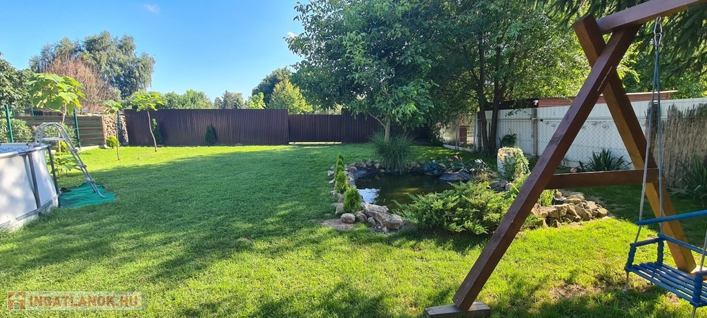 Nyíregyháza Sóstóhegyen eladó egy kiváló állapotú, szilikát és tégla építésű családi ház, amely 1528 m²-es, rendezett telken helyezkedik el. Az ingatlan praktikus elrendezésű: 2 szoba, 2 félszoba, tágas nappali, konyha és étkező biztosítja a kényelmes mindennapokat. A ház cseréptetővel épült, alatta pince található. A fűtés egyedi gázkazánnal, illetve vegyes tüzelésű kazánnal is megoldható, így gazdaságosan fenntartható. A házhoz tartozik garázs, fedett autóbeálló, valamint egy hangulatos fedett terasz is, ami kiváló helyszíne lehet a családi és baráti összejöveteleknek. Az udvar rendezett, kerti tó is kialakításra került, ami tovább emeli a kert hangulatát. A nyílászárók műanyagból készültek, redőnnyel felszereltek, a komfortot pedig 2 darab klímaberendezés is növeli. A beépített konyhabútor a vételár részét képezi. Az ingatlan egy csendes, forgalomtól mentes utcában található, így ideális választás családosok vagy nyugalomra vágyók számára. Ha egy jól karbantartott, minden igényt kielégítő otthont keres Sóstóhegyen, ne hagyja ki ezt a lehetőséget!Az ingatlan azonosítója: 98570Érdeklődni: +36703610015 Az ingatlan azonosítója: 98570 Érdeklődni: +36703610015