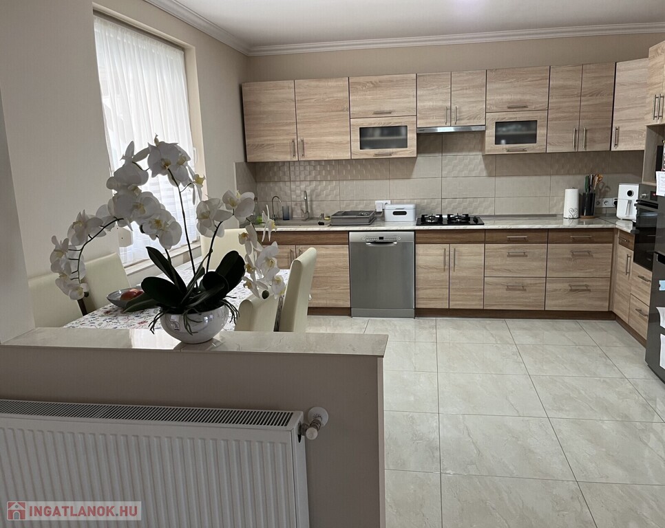 Nyíregyháza-Borbánya, Alma utca közeli részén eladásra kínálunk egy 110 m2-es, 2 szoba, nappalis, tégla-szilikát falazatú, hőszigetelt 8 cm hungarocell nemesvakolattal, lemeztető fedésű, részben térkövezett, 752 m2-es, parkosított telken található családi házat. Az ingatlan néhány éve teljes körű külső és belső felújításon esett át. Az öntözés fúrt kútról is biztosítható.