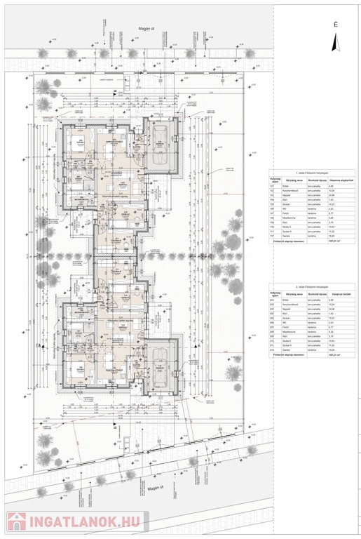 2 ingatlan: 107,21 nm. Nappali, Étkező, Konyha + 3 szoba. Az ingatlan össznégyzetméteréhez tartozik egy 16,20 nm-es garázs.