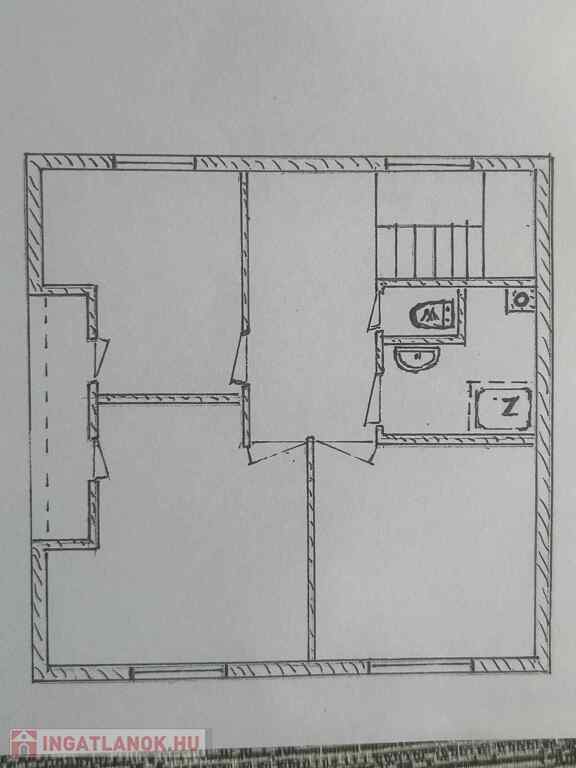 Földszint: nappali, konyha + étkező, fürdőszoba, külön WC, közlekedő, lépcsőház
