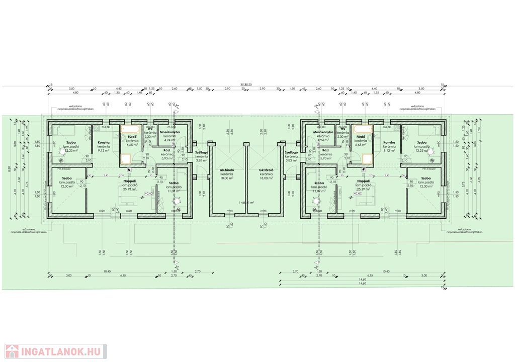 Szigetelés: Az ikerházak dupla falazattal és extra szigeteléssel elválasztottak, teljesen különálló mérőórákkal