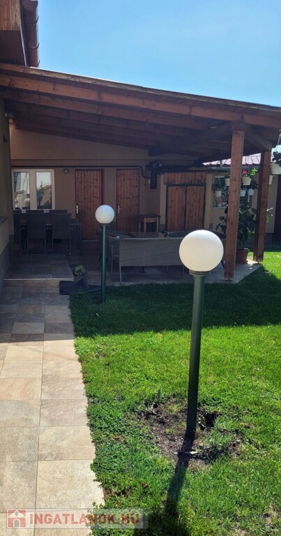 Az ingatlan udvara 457 nm., parkosított, öntözését fúrt kút biztosítja, itt helyet kapott még melléképület, 2 pince, 2 állásos garázs.