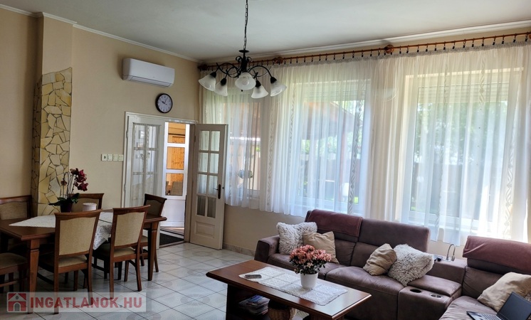 Vegyes falazatú, felújított lemez tető fedésű, egyedi gáz padló és radiátor fűtéses, hűtő-fűtő klímával, redőnnyel szerelt műanyag nyílászáróval, parketta, járólap burkolatokkal rendelkezik.