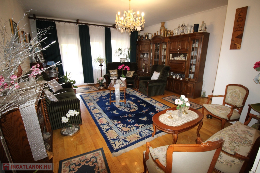 Nyíregyházán a Korányi kertvárosban 170 nm-es, 5 szoba+nappalis, szintes, tégla építésű, dupla teraszos, saját 70 nm-es udvarral, garázzsal családi sorház eladó.