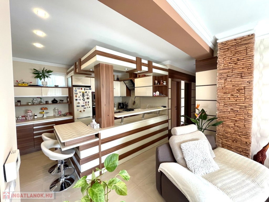 Az ingatlan 2015-ben téglából épült, mely szigetelt,fűtésrendszere egyedi gázfűtéses padlófűtéses,klimatizált- kellemes hőérzet minden évszakban,redőnnyel felszerelt műanyag nyílászárós,újszerű, járólap, laminált padló burkolatú,riasztórendszerrel ellátott,újszerű, egyedi, gépesített konyhabútor került beépítésre.