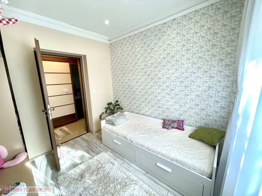 Nyíregyháza–Nyírszőlős bevezető szakaszának kedvelt, új családi házas övezetében eladó egy 93 nm-es, kiváló állapotú, 3 szobás + nappalis ikerház. Az ingatlan egy 470 nm-es, parkosított és térkövezett telken helyezkedik el. Az ikerház 2015-ben épült, a garázs mentén összeépítve, 2 garázzsal.