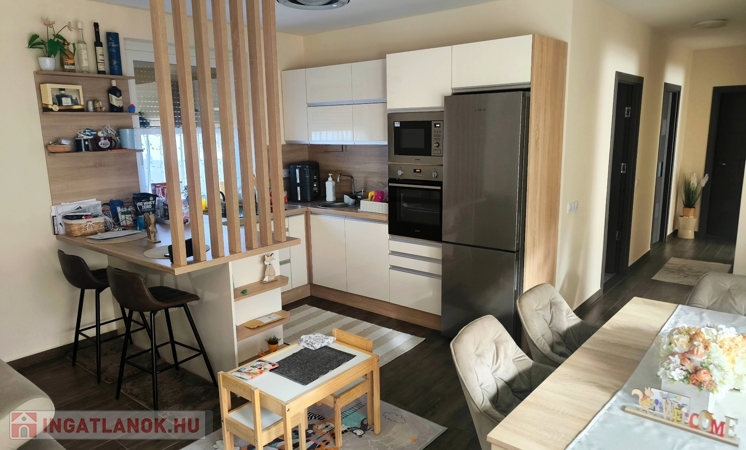 Nyíregyháza-Borbányán a Tünde utcai körforgalom közelében új építésű, magánúttal rendelkező övezetében eladó egy 2022-es építésű, nettó 106 m2 alapterületű, 3 szoba, nappalis, modern, fiatalos kialakítású és berendezésű családi ikerház. Három hálószoba, nappali-konyha-étkező, mosókonyha, fürdőszoba( káddal és zuhanyzóval), külön wc, egy állásos garázs és tágas, 18 nm2-es terasz található az ingatlanban.