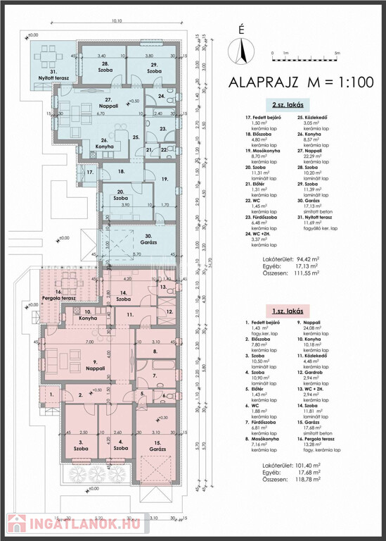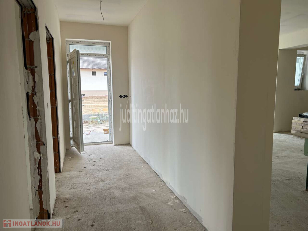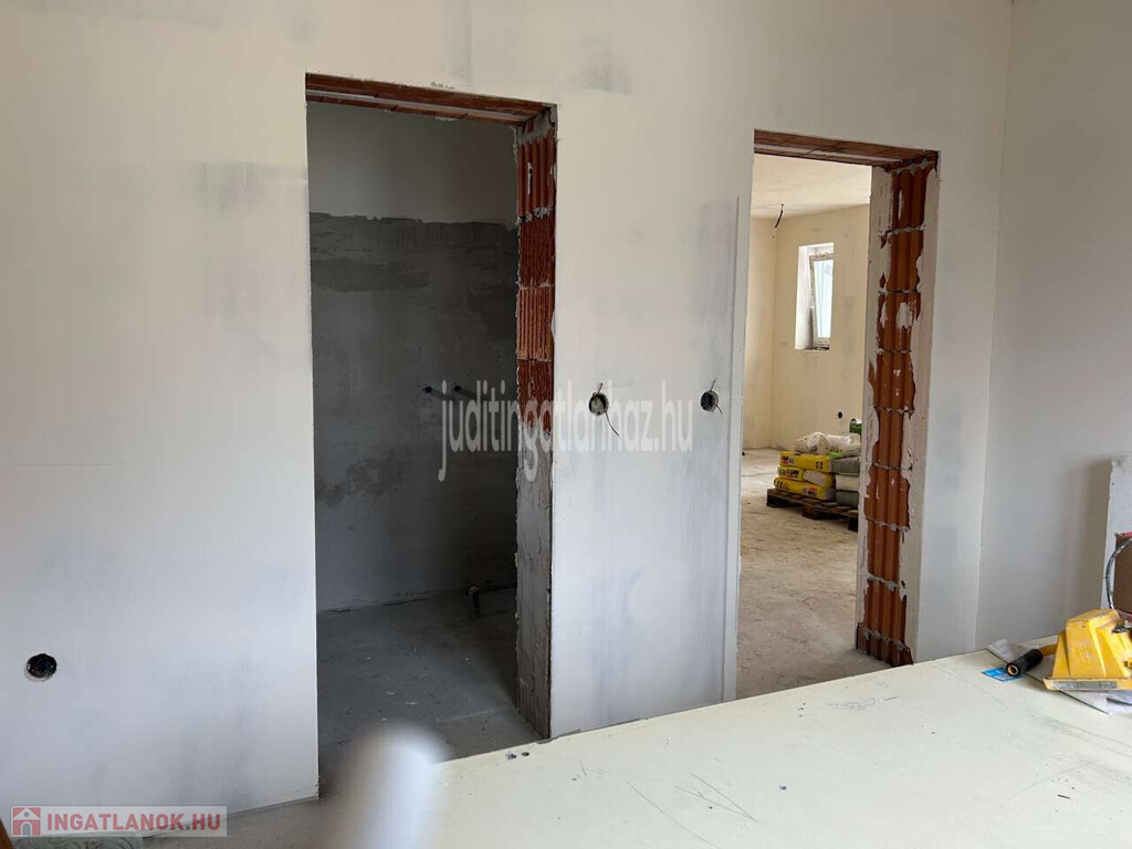 Nyíregyháza, Oros eladó új építésű iker családi ház mely jelenleg is építés alatt áll a házak 111 és 118 m2-s, három különnyíló szoba, nappali+étkező+konyha egy térben, fürdő szoba, külön wc, zuhany+wc, mosókonyha, gardrob, továbbá 11 és 13 m2-s nyitott és pergolás burkolt terasz, 17 m2-s garázs melynek automata kapubejárata lesz, fűtése hőszivattyú mely padlóra vezérelt, nyílászárók három réteg üvegezésű fehér műanyag. Az utcafronti ingatlan 300 m2-s telekkel rendelkezik a hátsó 750 m2-s telket birtokolhat, szép kerítés, térkövezett járda és garázs felhajtó tartozik mindkettőhöz. A házak porotherm 30-s téglából épülnek, belső válaszfal 10-s tégla, falak belülről kartonozva, külső nikecel szigetelés 15 cm-s, mennyezet fémvázra erősített tűzálló gipszkarton rajta pára áteresztő fólia és 30 cm-s kőzetgyapot szigetelés, fafödémes a tető beton cseréppel fedve alatta hővédő fólia, padló burkolat laminált lapok és járólap. A szaniterek a belső ajtó és a burkolat még kiválasztható. Birtokba adás 2026 tavasz vége! Minden kedvezmény igényelhető!