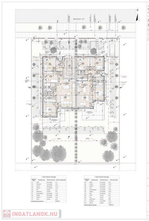 2 ingatlan: 108,42nm, Nappali, Étkező, Konyha + 3 szoba. Az ingatalan össznégyzetméteréhez tartozik egy 16,20 nm-es garázs is tartozik.