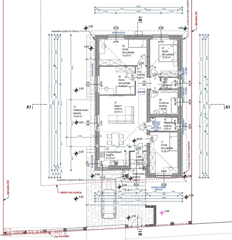 Az új építésű családi ház várhatóan 8 hónapon belül kerül átadásra, mely korszerű hő takarékos építészeti megoldásokat alkalmazva készül el. A falazata 30-as téglából épül, mely 15 cm-es EPS homlokzati hőszigetelést kap. A födém szerkezete 15 cm-es ásványszálas hőszigetelésű lesz, így az egész épület energetikai szempontból A++ kategóriájú.