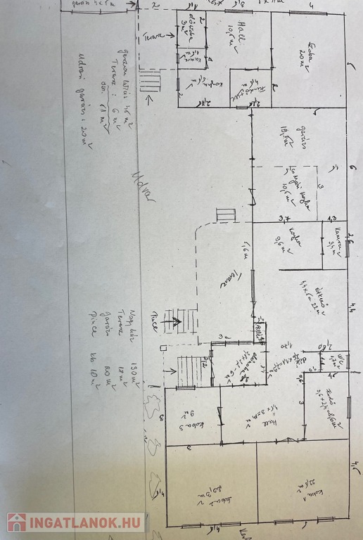 3 szoba, hal, konyha, étkező, kamra, zuhanyzós és kádas fürdőszoba, külön mellékhelyiség, előszoba, 18 nm-es fedett terasz.