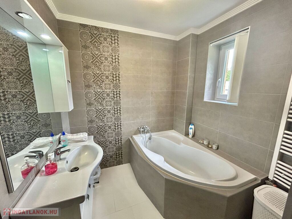 Az ikerház 230 nm., 2021-ben épült, 350 nm-es saját telekterülettel rendelkezik, mely parkosított, öntözését fúrt kút és öntözőrendszer biztosítja.