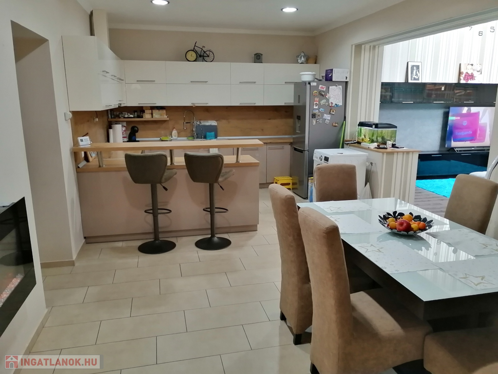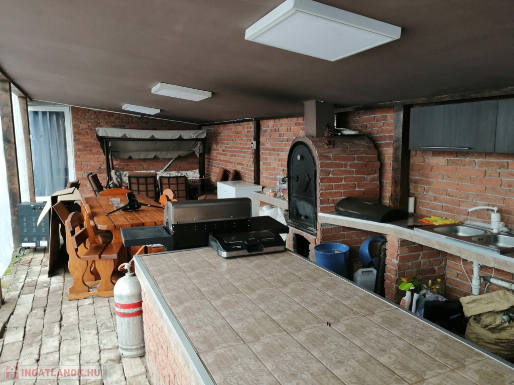Nyíregyházán, a kórház közelében, 2 generáció számára is alkalmas, 97+64 nm-es, földszintes, 3 szoba + nappalis, egyedi gázfűtéses, szép állapotú, duplakomfortos családi (iker) ház, 520 nm-es telekkel eladó. További jellemzők: a 2019-ben felújított épület hőszigetelt, logikus-, jól élhető belső elosztású, tágas nappali-konyha-étkező egy légtérben, új beépített/gépesített konyhabútor, a szobák külön nyílnak, gardróbhelyiség (egy fél szoba alakítható ki belőle igény esetén), szép padlóburkolatok (járólap és laminált padló), műanyag nyílászárók (redőnnyel), 2 db klímaberendezés (hűtő/fűtő), riasztórendszer, modern fürdőszoba (sarokkáddal és épített zuhanyzóval, a WC külön helyiségben található), a nappaliból fedett terasz (20 nm-es) és kertkapcsolat. Az egyik szoba elszeparált, ehhez tartozik egy fürdőszoba (zuhanyzóval), és egy külön helyiségben lévő WC. A térkövezett és parkosított udvaron/kertben egy nagy méretű filagória (45 nm) található (beépített kemencével, kerti konyhával), egy szalonnasütő/főzőhely is rendelkezésre áll, valamint egy süllyesztett, kisebb méretű medencét is elhelyeztek. Az udvaron fedett gépkocsibeálló is található (2 autó részére is alkalmas). A beépített-jellegű bútorzat, és gépesítés marad az ingatlanban, azok értékét az irányár már tartalmazza. Vevőink számára az ingatlanközvetítés díjtalan, a vásárlással kapcsolatos mindenfajta ügyintézésben segítséget nyújtunk! Hivatkozási szám: 61615Az ingatlan azonosítója: 61615Érdeklődni: +36707893944 Az ingatlan azonosítója: 61615 Érdeklődni: +36707893944