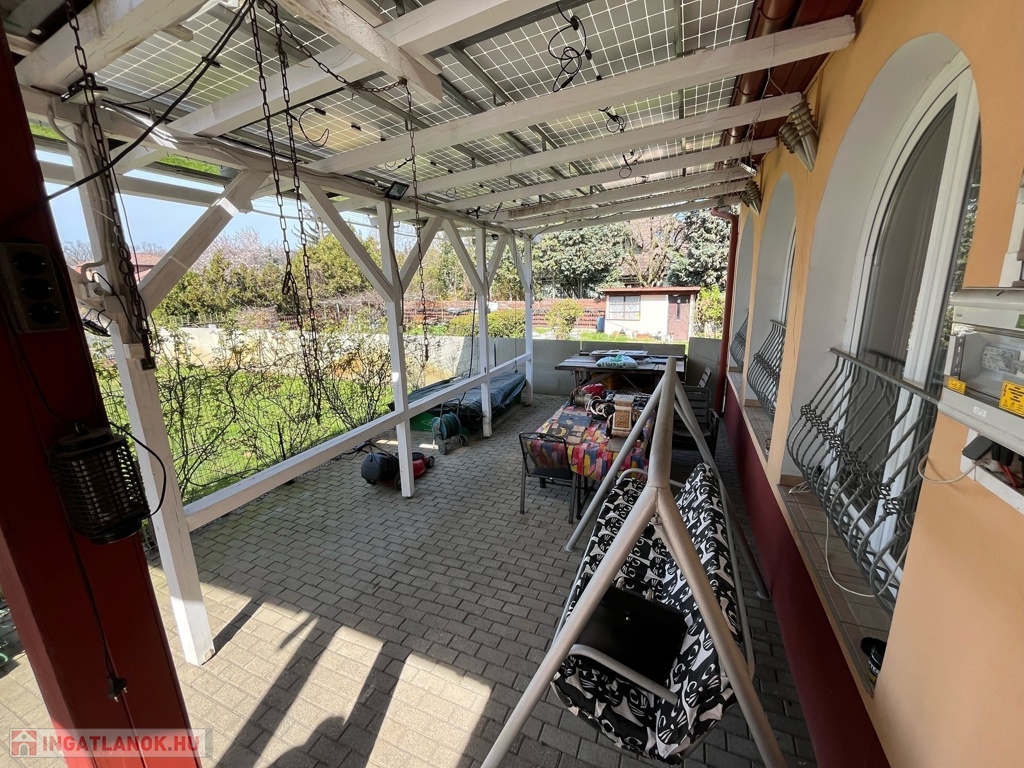 A családi ház klímákkal és napelemmel felszerelt, konyhájában egyedi gépesített konyhabútor került beépítésre. Az ingatlan alsó szintjén egy szoba, nappali, konyha, fürdőszoba, WC, található. Az emeleten két külön nyíló szoba, fürdőszoba, WC került kialakításra.