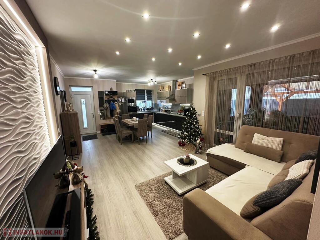Nyíregyháza Ságvári kertváros új lakónegyedének csendes, aszfaltozott utcájában eladó egy modern építésű, 3 szobás, amerikai konyhás-nappalis, dupla garázzsal rendelkező 2019 ben épült ikerház 450m2 es parkosított telekkel.