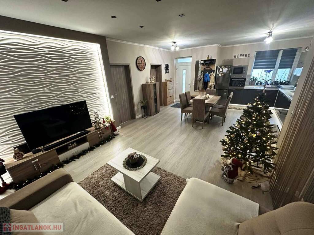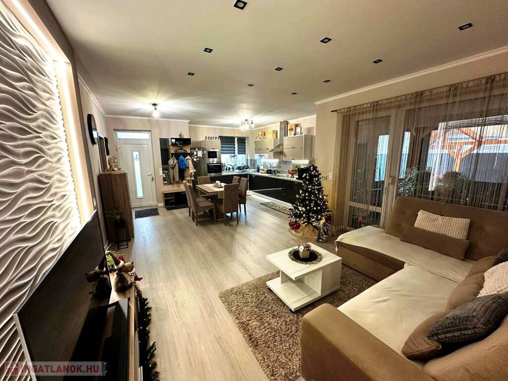 Nyíregyháza Ságvári kertváros új lakónegyedének csendes, aszfaltozott utcájában eladó egy modern építésű, 3 szobás, amerikai konyhás-nappalis, dupla garázzsal rendelkező 2019 ben épült ikerház 450m2 es parkosított telekkel.