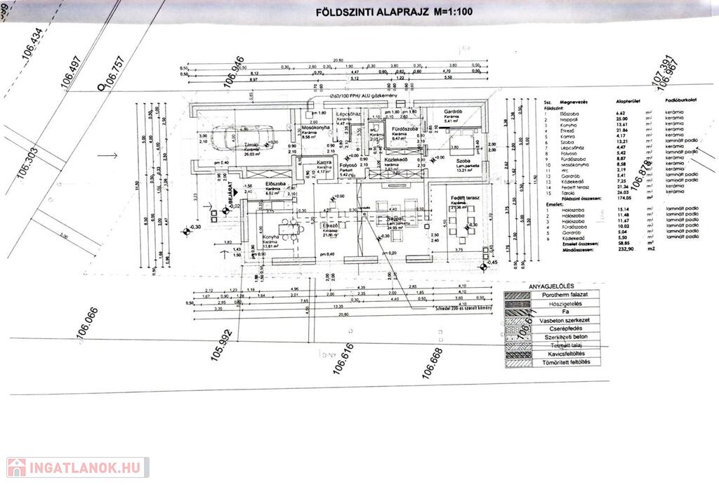Összesen 233 m²-es alapterület