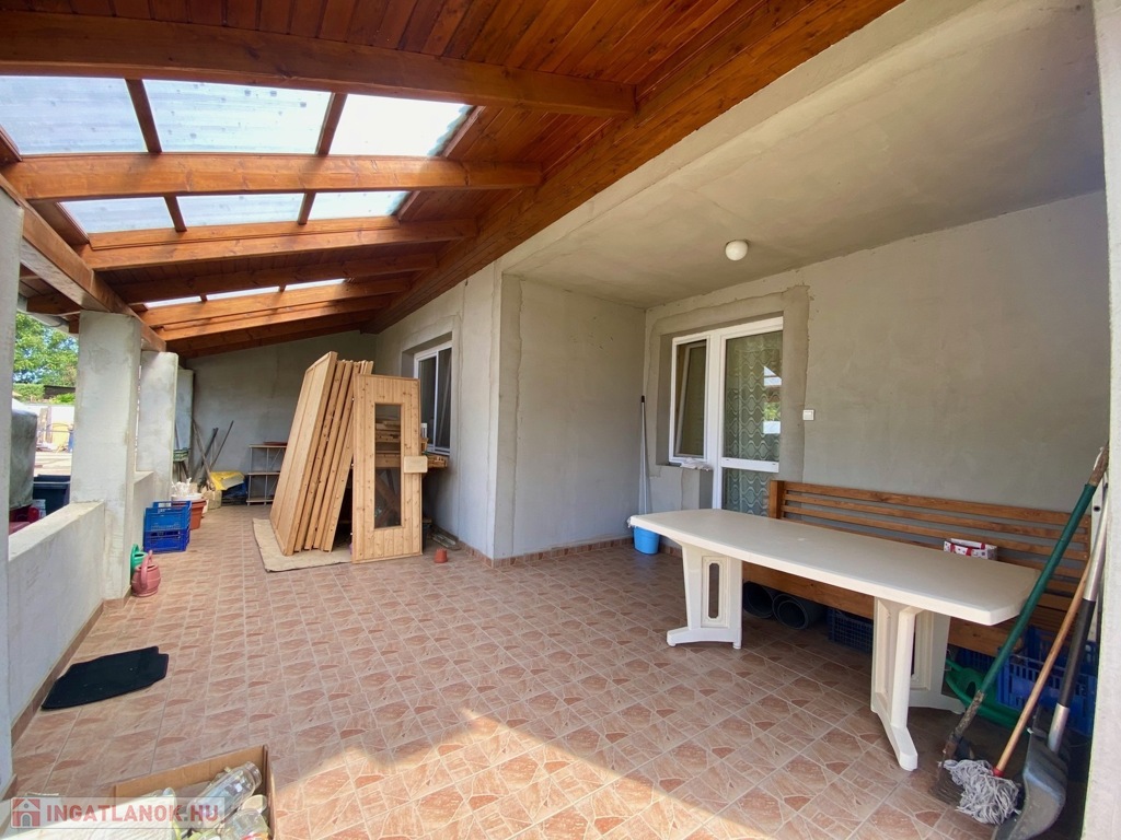 30 m²-es fedett terasz nyújt kiváló lehetőséget a kikapcsolódásra és családi összejövetelekhez.
