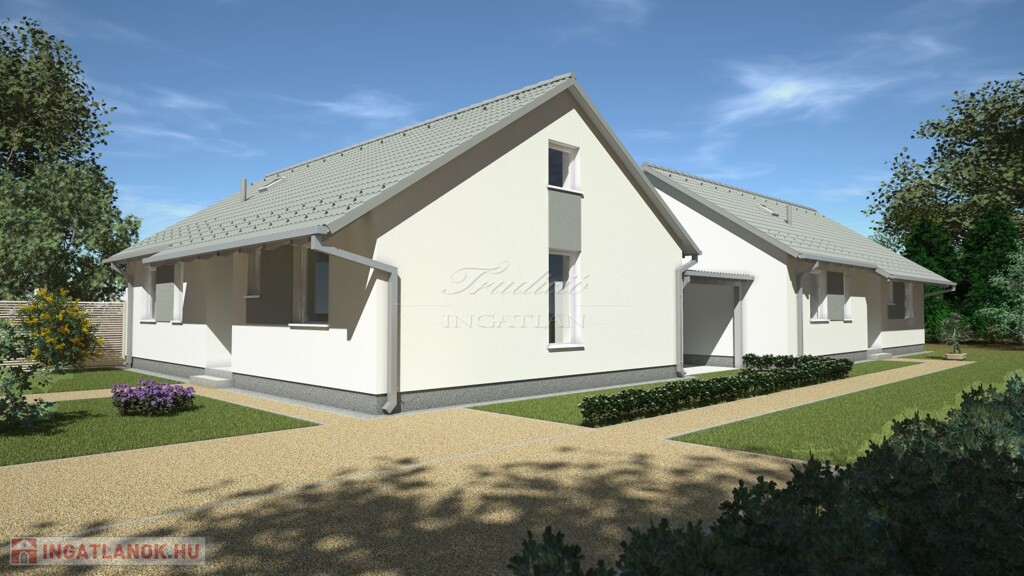 Győr határától pár percre Nyúl központi, jól megközelíthető forgalom mentes utcájában, össz. 670 m2-es telken felépülő, egyenként 76 m2-es, nappali és 3 szobás, család számára ideális elosztású ikerház / két lakásos társasház / kamrával, terasszal, udvarréssze eladó.