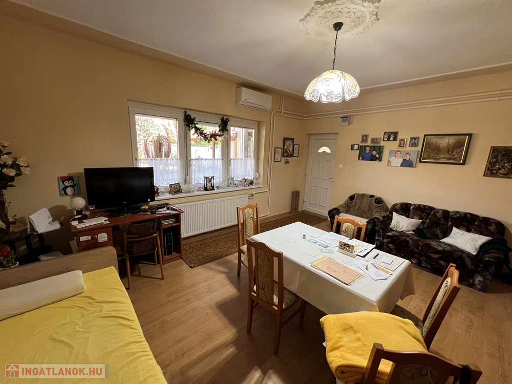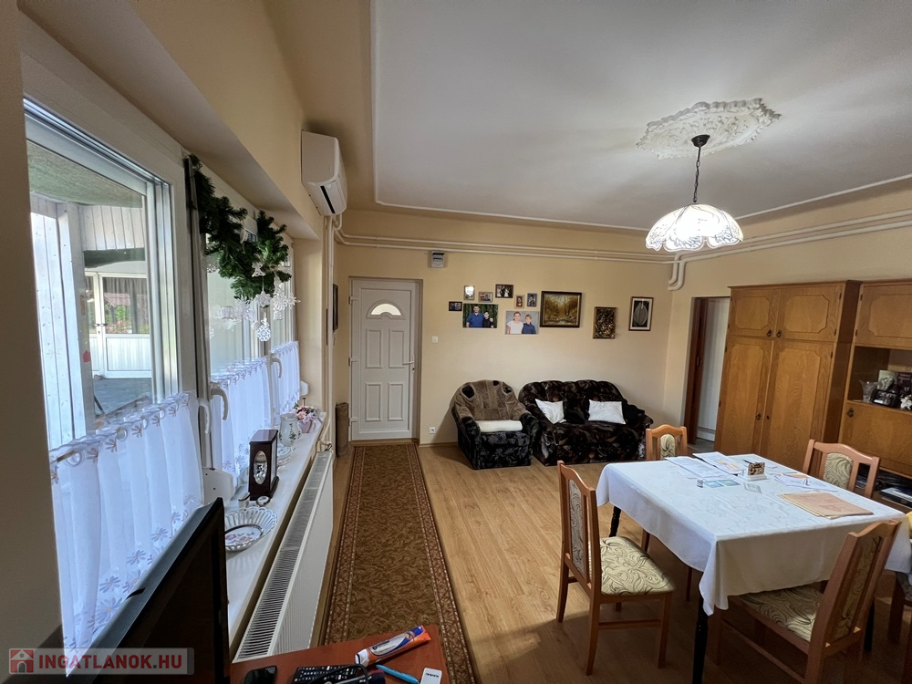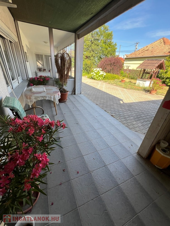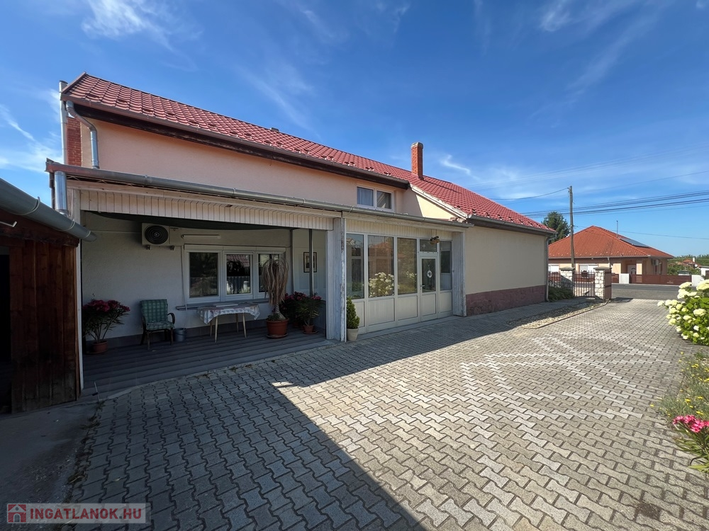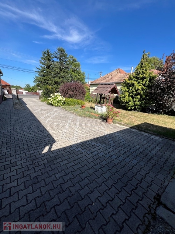 Nyúl-Győrújbarát határán, 1453 m2-es, 23 m SZÉLES UTCAFRONTÚ, összközműves telken lévő, folyamatos felújításokon átesett (alsó szinten nyílászárócsere, tetőhéjazat csere, részben villanyvezetékcsere, részben vízvezetékcsere, fürdő – WC felújítás, új konyhabútor, új lakrész kialakítás. stb.) konyha + étkező + nappali + 4 hálószobás, továbbá kamrával is felszerelt, duplakomfortos (2 db fürdőszoba – WC), 174 m2 hasznos alapterületű, KLIMATIZÁLT családi ház, 5,5 m-es ERKÉLLYEL, 35,07 m2-es GARÁZZSAL, 13,24 m2-es fáskamrával és 5,75 m2-es borospincével eladó!