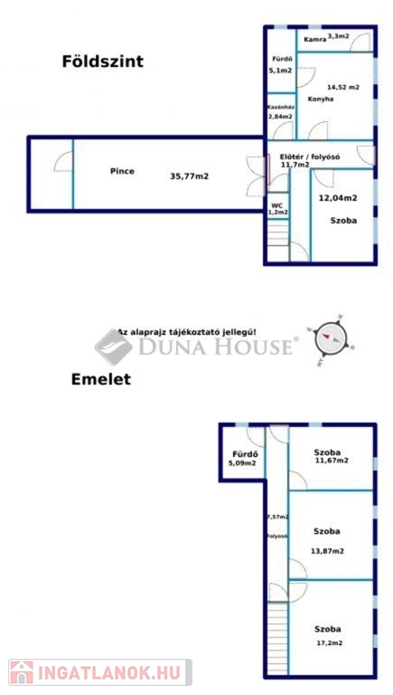 A két külön álló épület kisebbikje 65 m2, s jelenleg gazdasági épületként funkcionál. Szerkezetileg ép, s könnyen apartman, vagy külön lakrész alakítható ki belőle. A fő épület két szintes, összességében 110m2 hasznos alapterületű, s különös értéke, hogy a felső szint már most külön bejárattal is rendelkezik, de a házon belülről is megközelíthető. Így a felső szint külön apartman rész vagy fiatal generáció külön bejáratú lakása is lehet. Ezen a szinten 3 szoba, fürdőszoba, míg az alsó szinten 1 szoba, fürdőszoba, WC, konyha és egy hangulatos, száraz és tágas pince található.